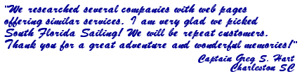 South Florida Sailing [Home] [About Us] [Boats] [Destinations] [Bareboat] [Crewed] [Condo/Sailing] [Booking] [Helpful Links] [Customer Feedback] [Day Sails]