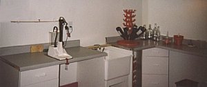 Bottling equipment. Vacuum filler on the left, bottle cleaner on right.