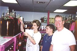 The customer learns of the available wines, their attributes, costs, time to maturation,etc. A selection is made and the concentrate is mixed with yeast nutrient and ultra-low chlorine water in the primary fermentor.
