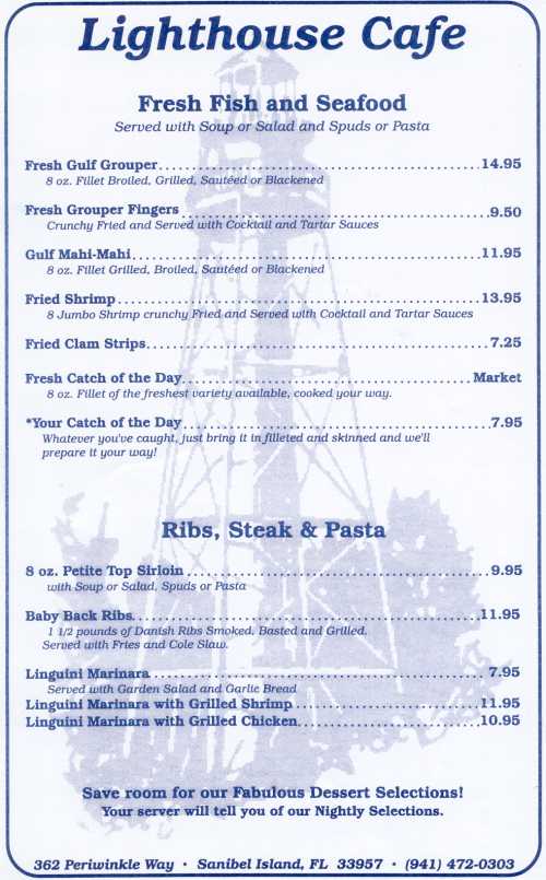 Lighthouse Cafe 362 Periwinkle Way Sanibel Island FL 33957 (941) 472-0303 Email: mbillhe349@aol.com