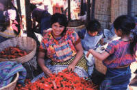 Guatemalan market Selling chilies in Chichicastengo, Guatemala