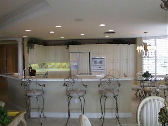 balcony, breakfast bar, dining/living room combo, eat in kitchen, screened